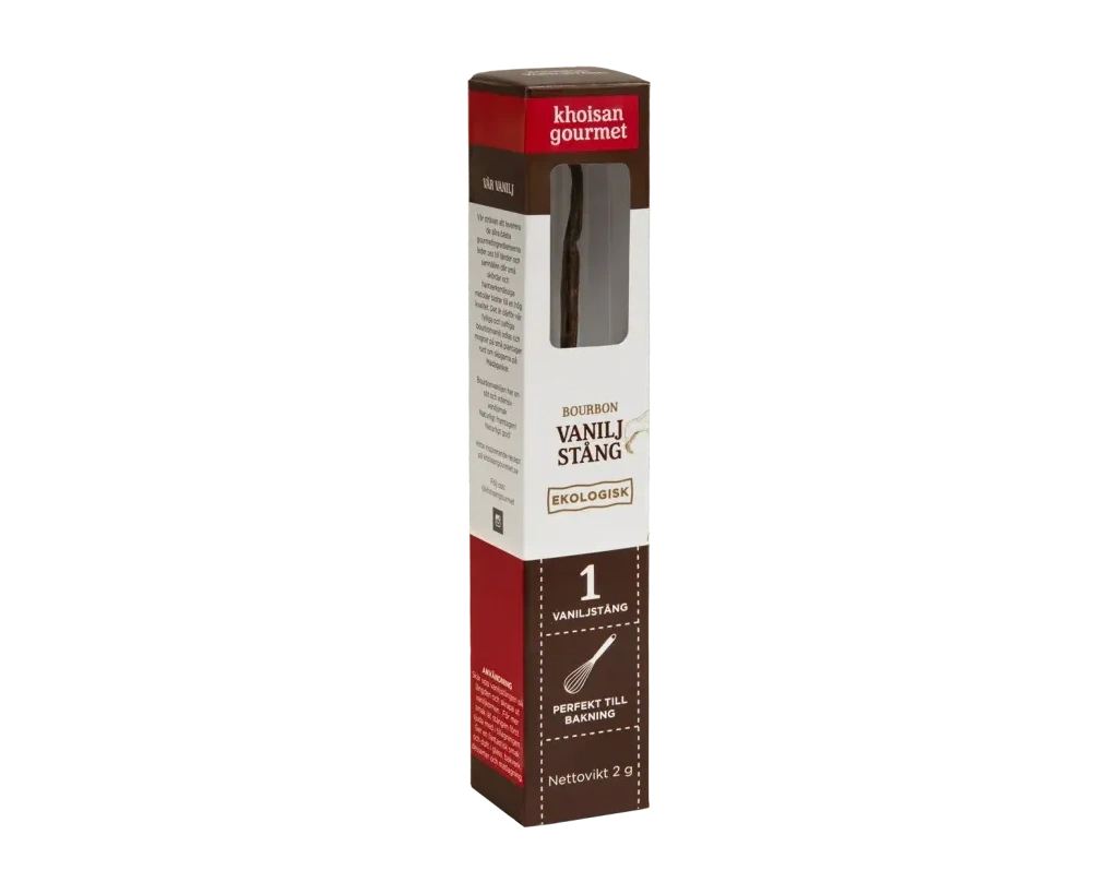 Khoisan Gourmets ekologiska vaniljstång är Bourbonvanilj av högsta kvalitet med fantastisk söt och fyllig vaniljsmak – perfekt i alla typer av bakning, glass, desserter och godis!