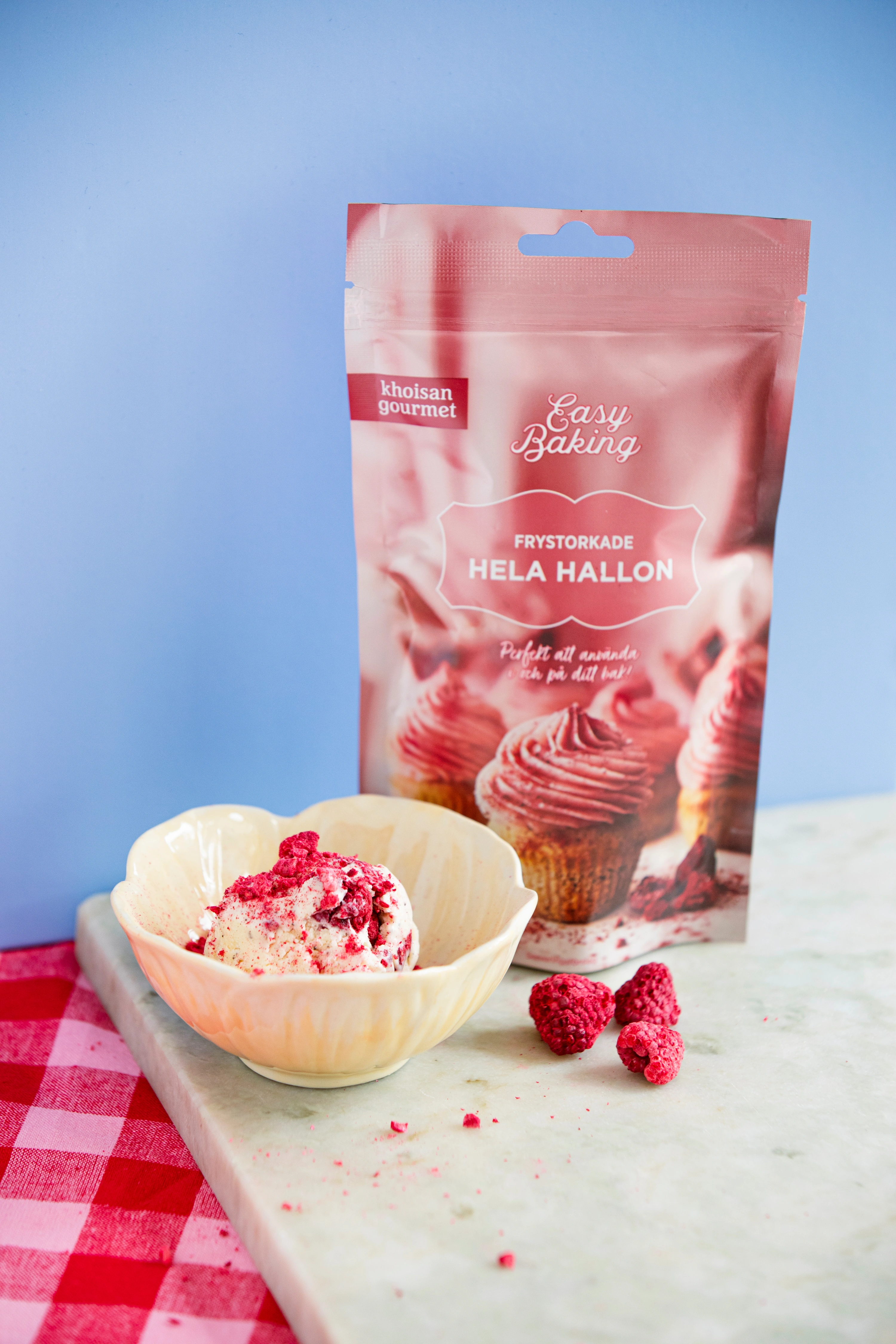Khoisan Gourmets Frystorkade Hallon är en del av Khoisan Gourmet’s serie Easy Baking, en serie bakingredienser med goda råvaror för inspirerande och lustfylld bakning!