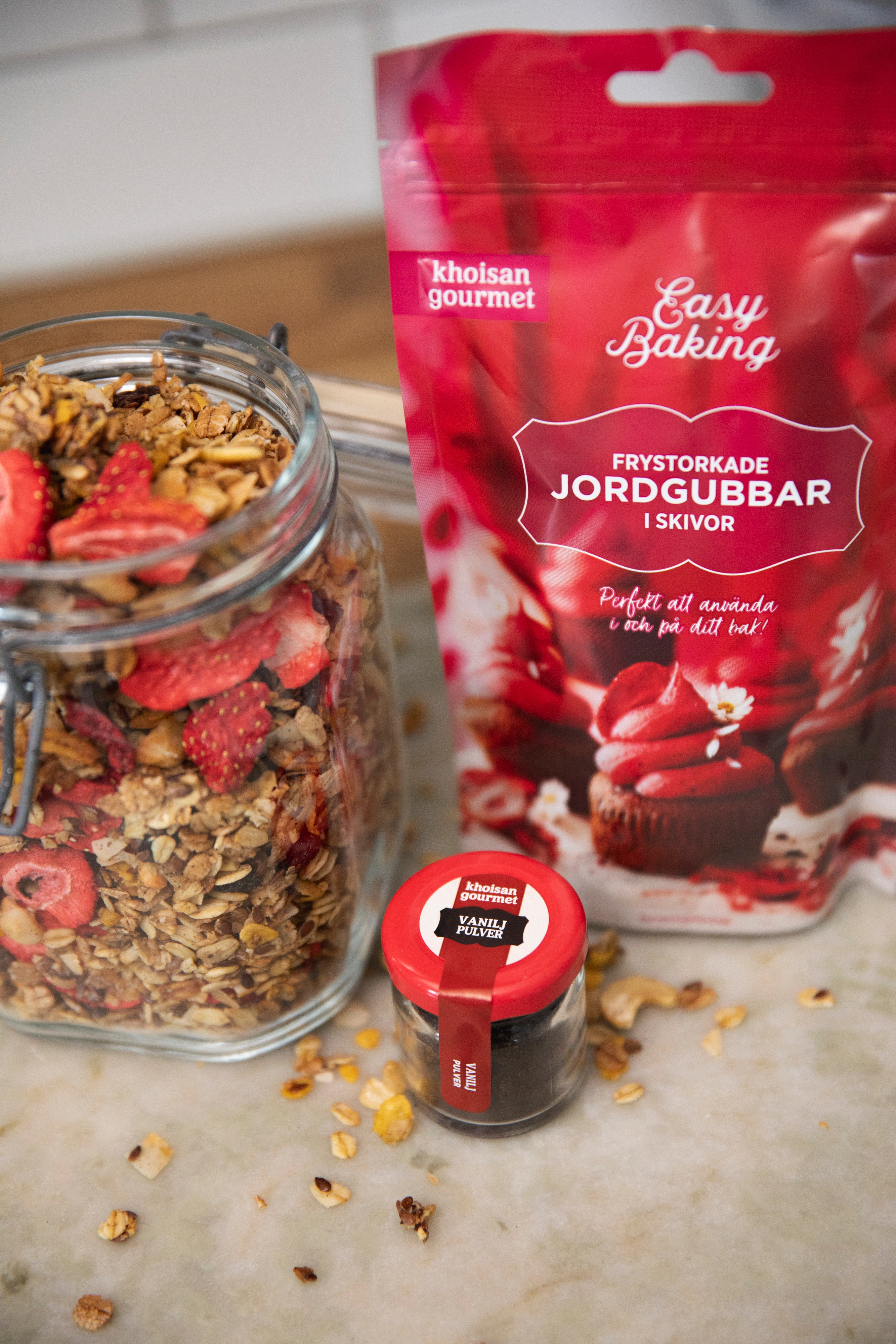 Khoisan Gourmets Frystorkade Jordgubbar är en del av Khoisan Gourmet’s serie Easy Baking, en serie bakingredienser med goda råvaror för inspirerande och lustfylld bakning!