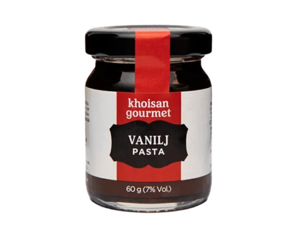 Tips! Byt ut vaniljsocker i recept mot Khoisan Gourmet vaniljpasta för vaniljsmak. Eftersom vaniljpasta är så smakrikt behöver du bara en liten mängd. Det behövs endast ¼ så mycket vaniljpasta för att få samma smak som vaniljsocker i dina bakverk.