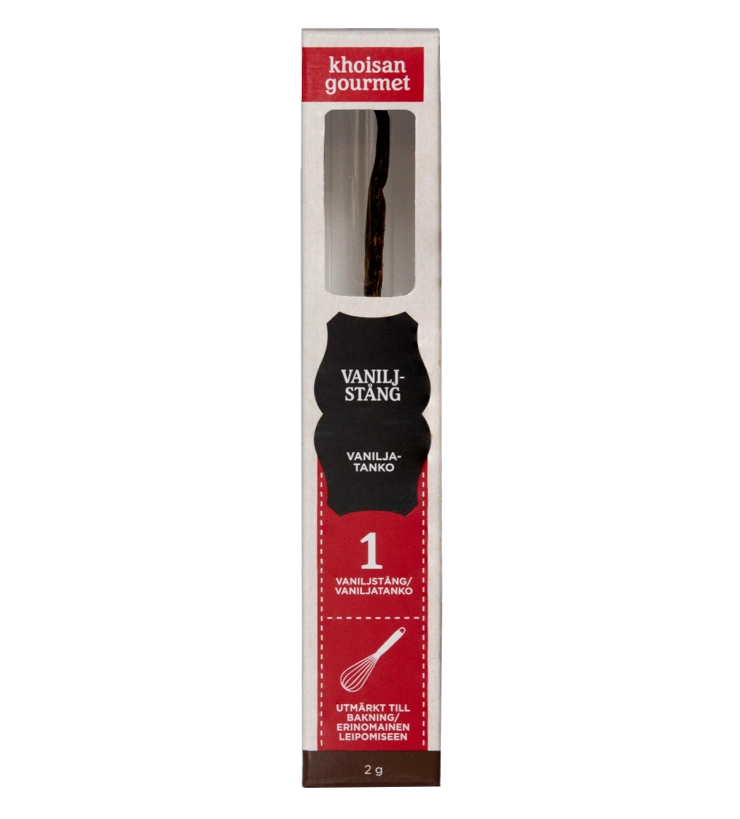 Khoisan Gourmet Vaniljstång har en fantastiskt söt och fyllig vaniljsmak – perfekt i alla typer av bakning, glass, desserter och godis!