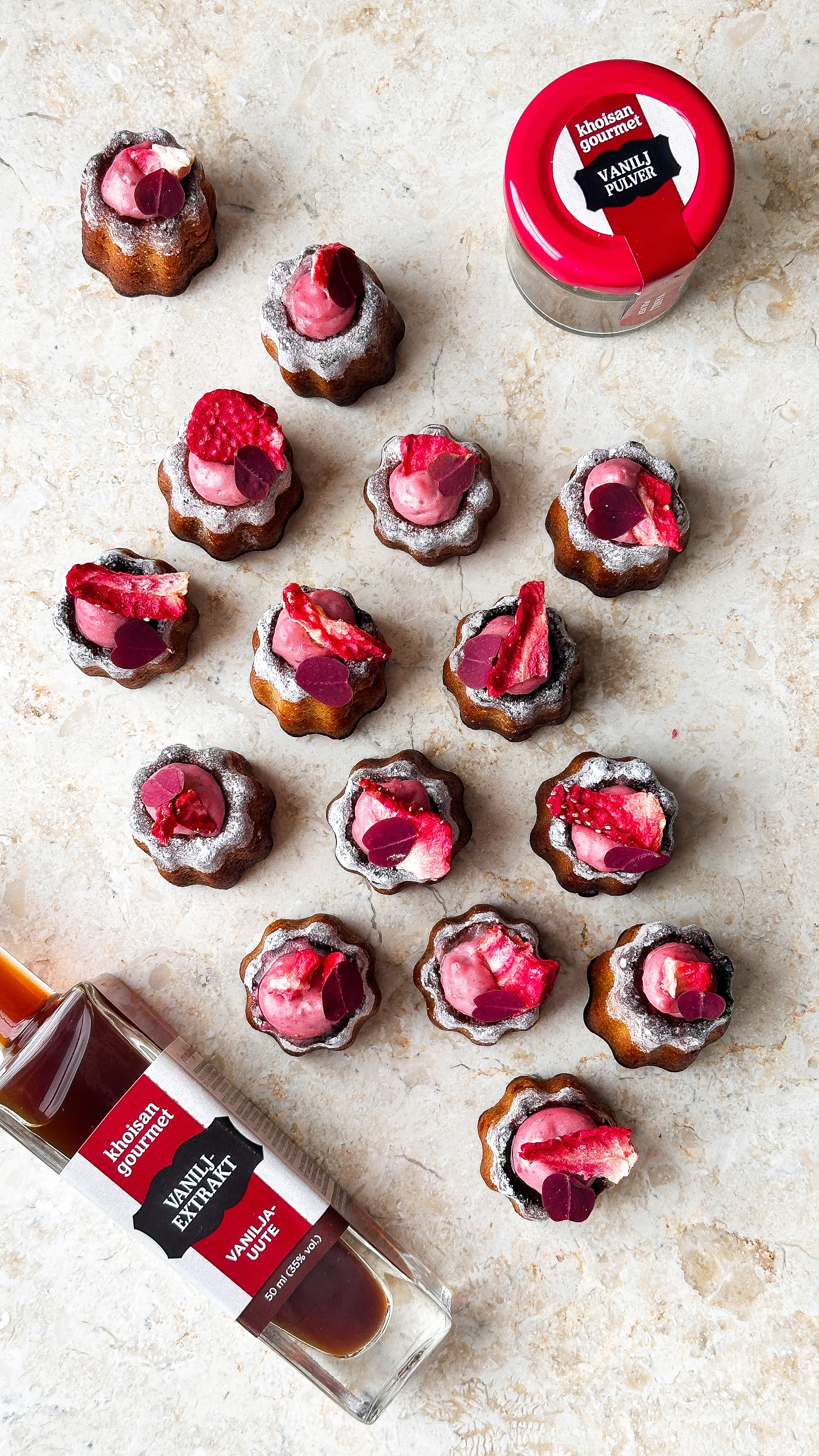 Canelé de Bordeuax med vanilj och jordgubbar